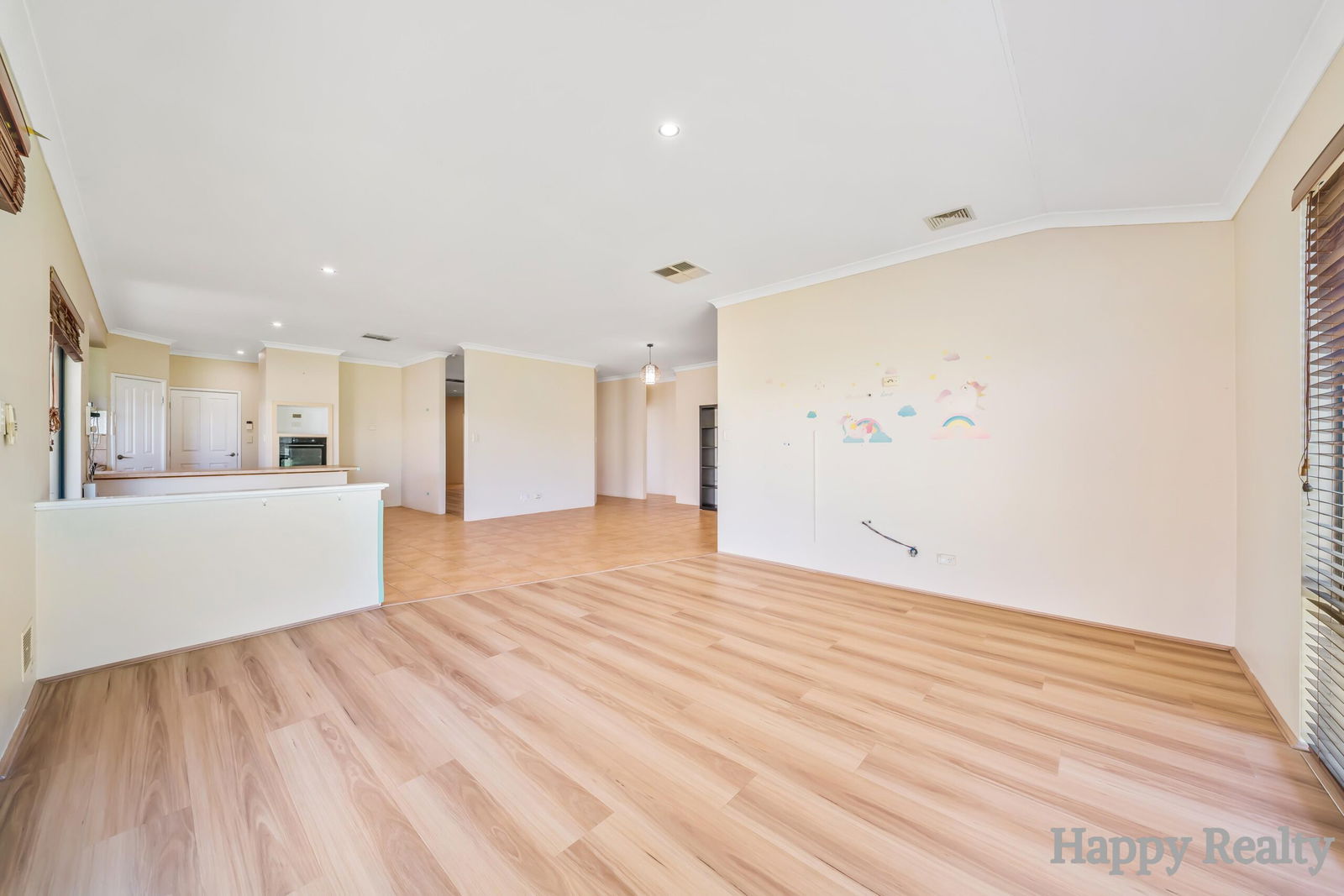 • High ceilings and modern downlights in living areas