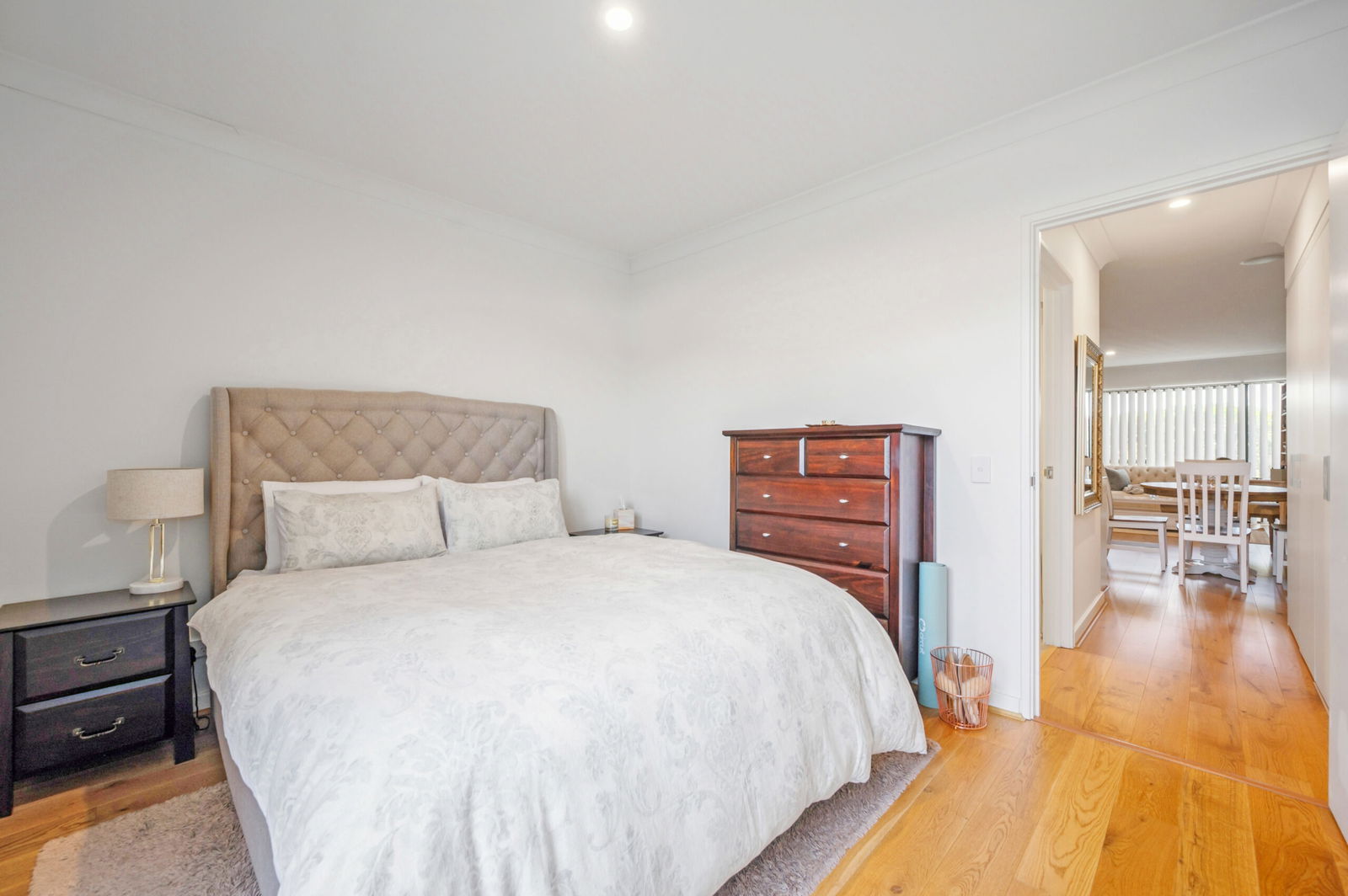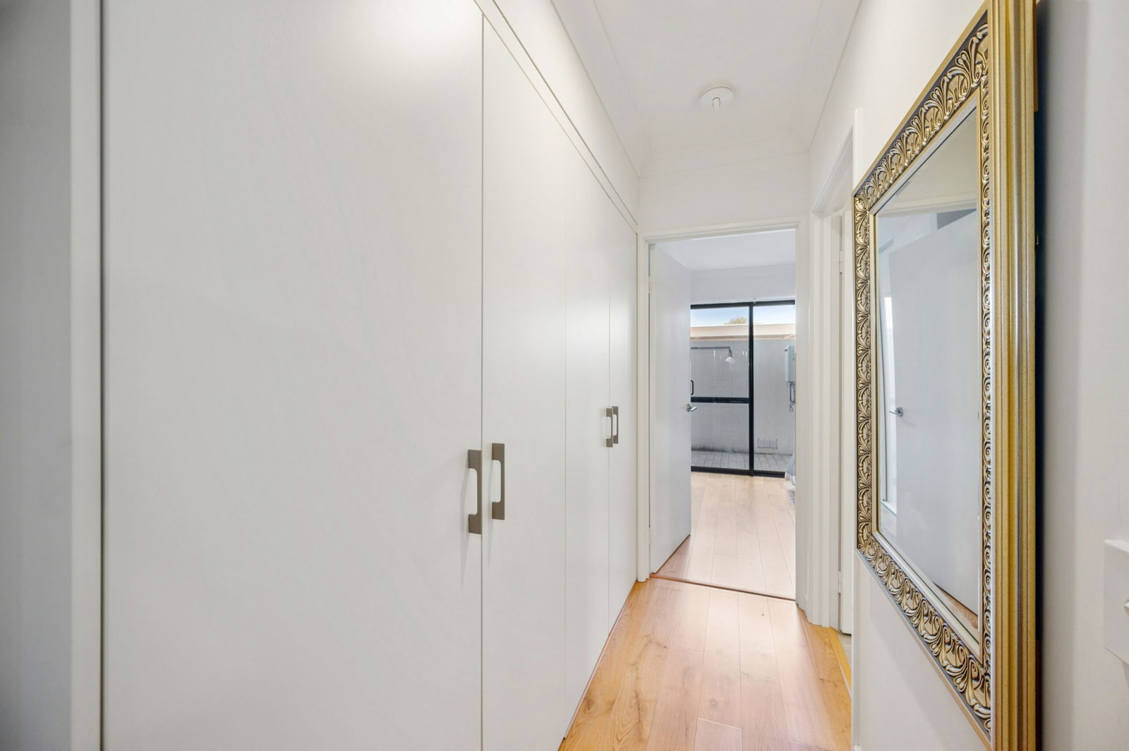 The master bedroom is well sized and features wooden sliding doors to the built-in wardrobe, adding both character and functionality. A centrally positioned bathroom services the apartment, while a cleverly integrated laundry is built into the hallway for added practicality.
