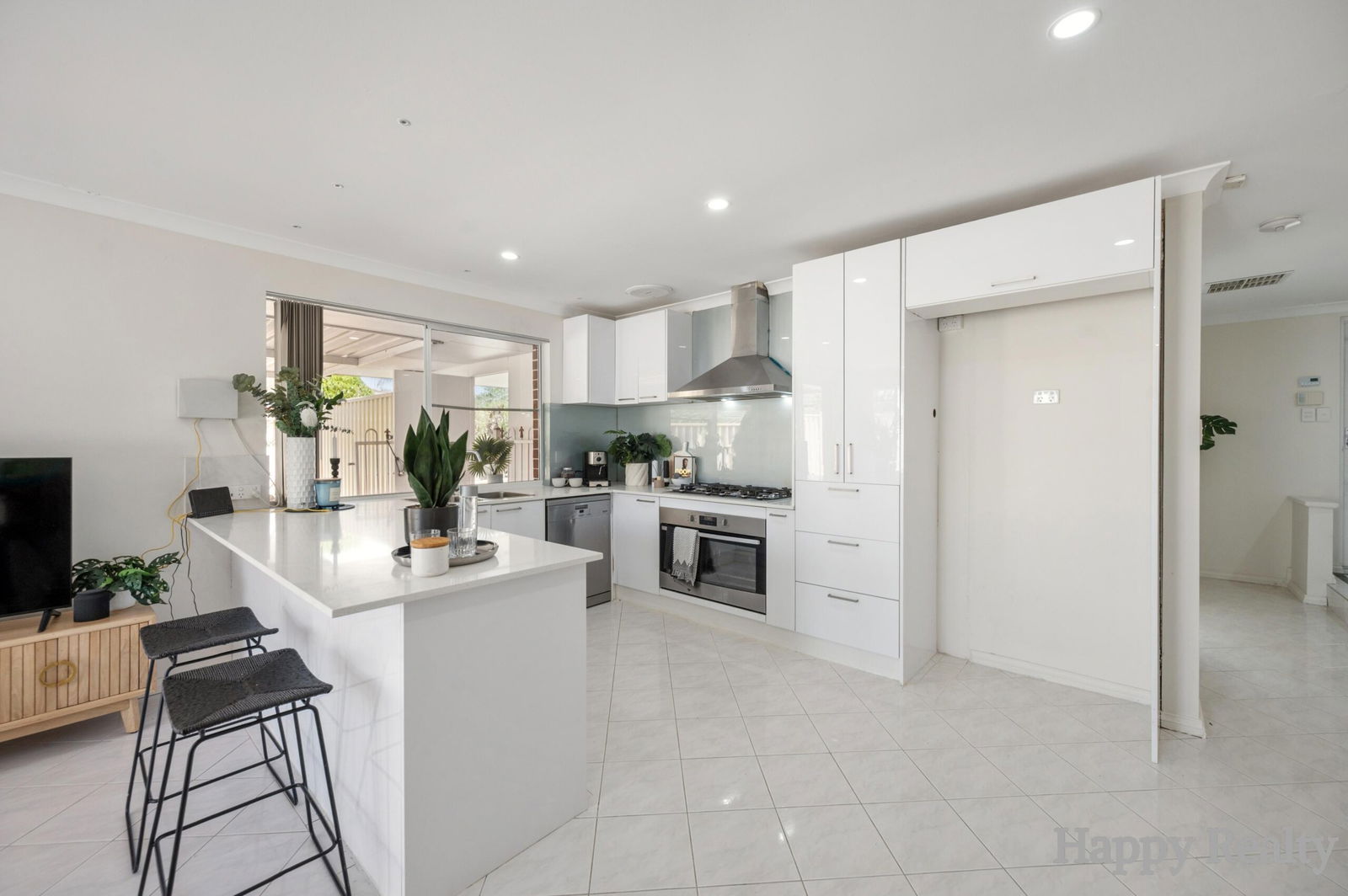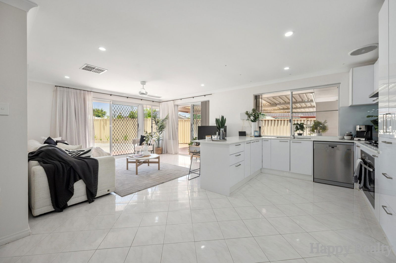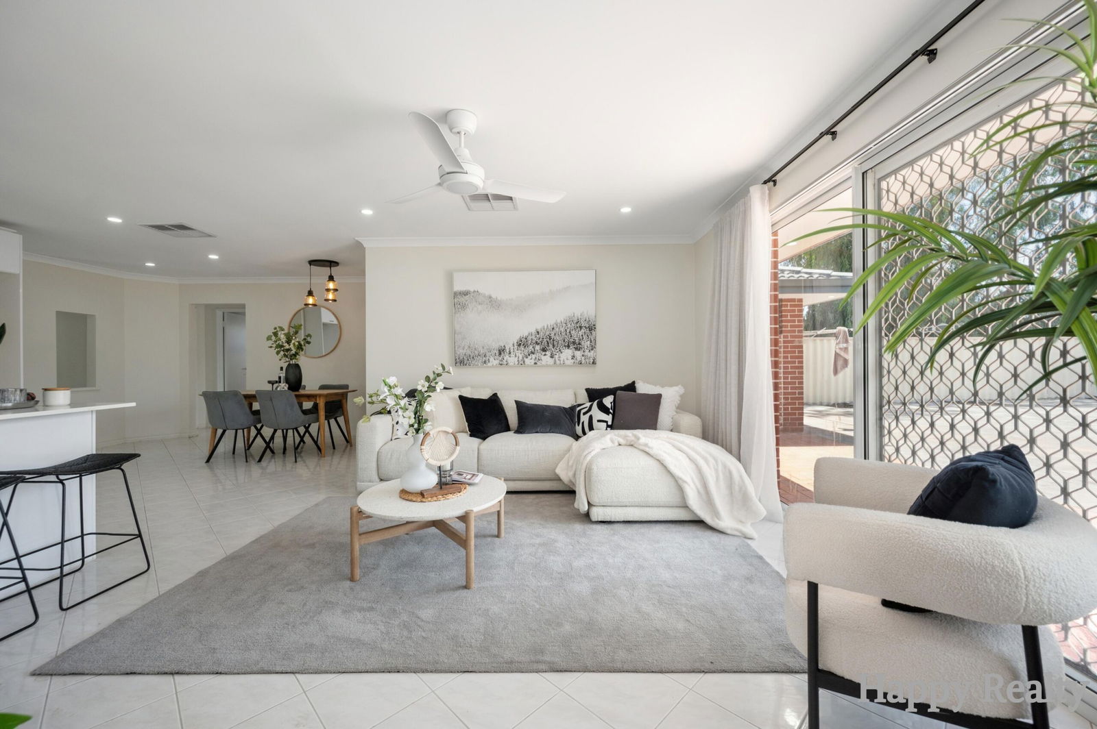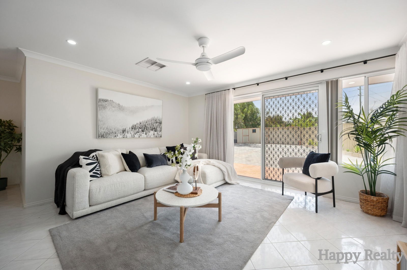 The open-plan living and dining areas form the heart of the home, both tiled and equipped with ducted air conditioning, smart lighting, and a ceiling fan in the living area. The fully renovated kitchen features a benchtop, modern fittings, a dishwasher, and comes with a warranty, overlooking the living space and backyard for excellent flow and easy entertaining.