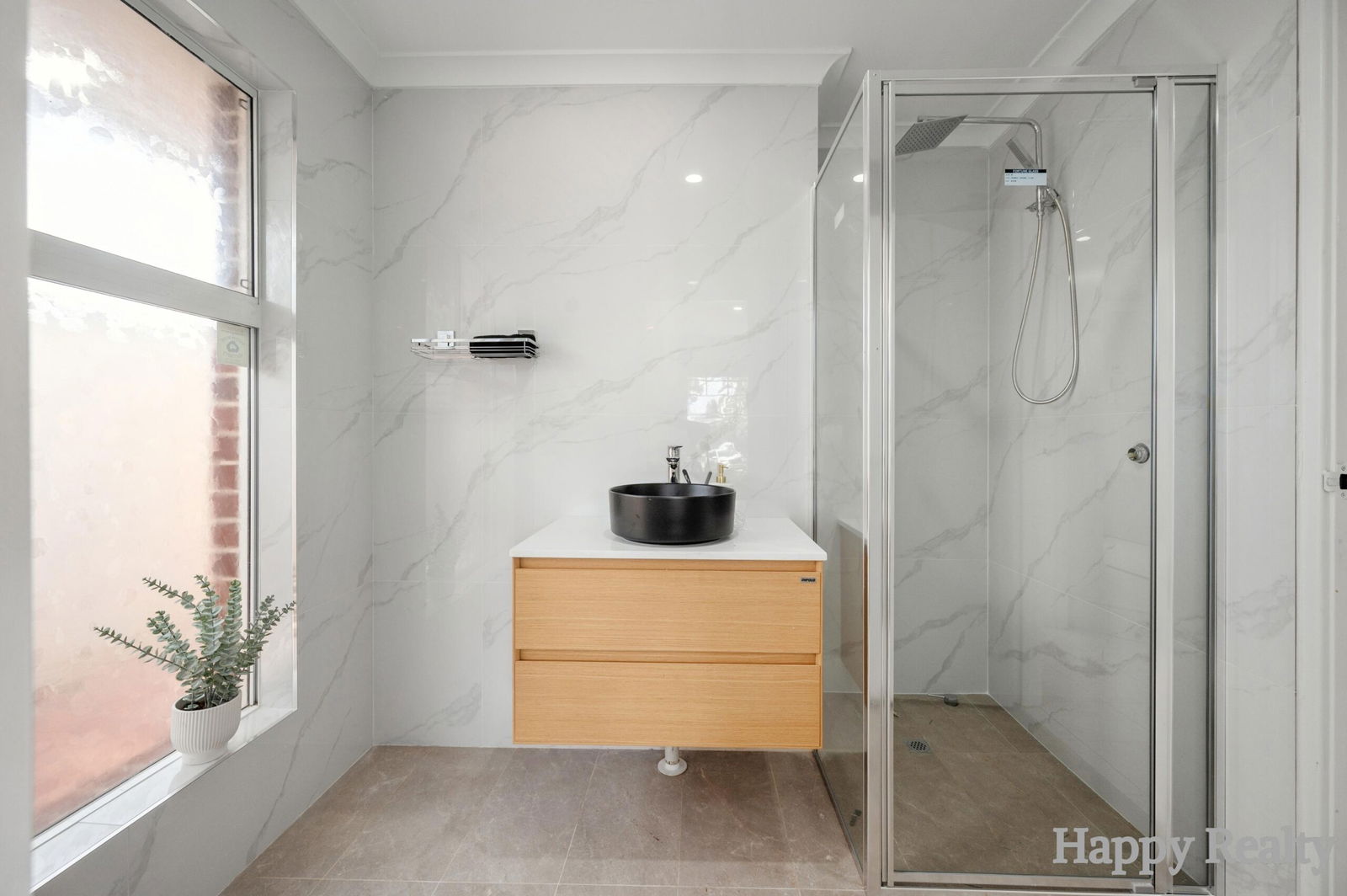 Renovated bathrooms include modern fittings, a new bathtub, shower heads, heat lamps, and exhaust fans. The functional laundry includes storage, a sink, and an additional toilet. Outdoors, the fully paved backyard is extremely low maintenance and provides a fantastic space for entertaining, hosting events, or relaxing, with potential for a granny flat. Parking is flexible with a driveway and carpark accommodating up to 7 cars. Additional highlights include a covered patio, multiple storage sheds, solar panels, and app-controlled smart lighting.