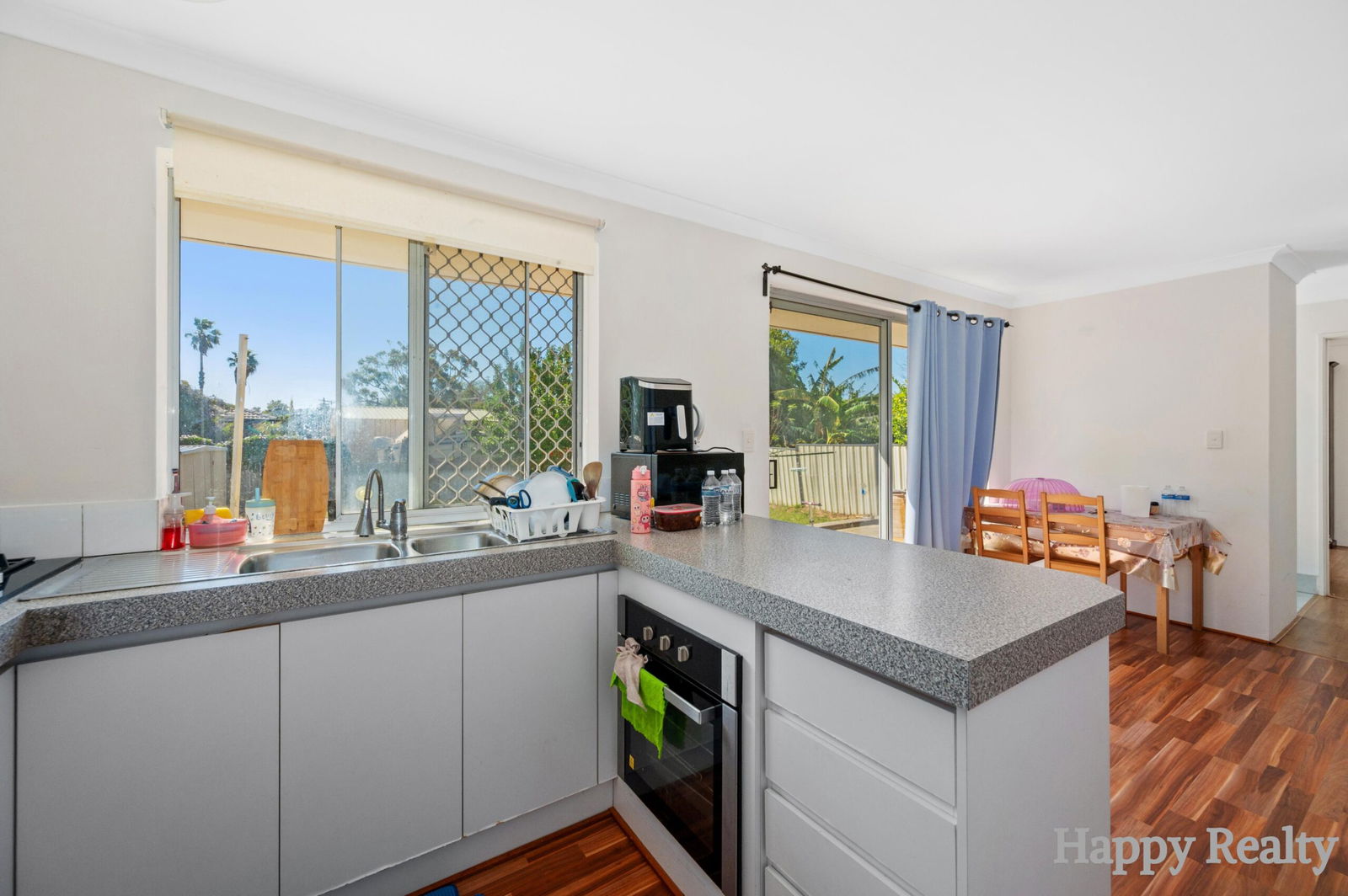 • Functional kitchen with under-bench oven, gas cooktop & double sink
