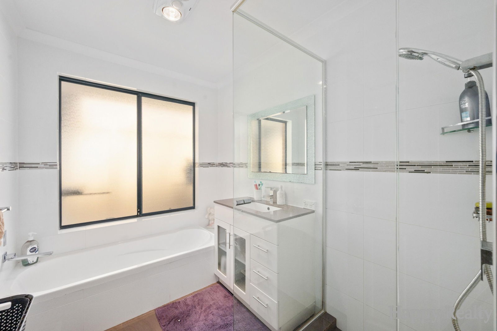 All minor bedrooms are generously sized, with Bedroom 2 featuring a built-in robe, while Bedrooms 3 and 4 are oversized with walk-in robes. A fully renovated family bathroom in neutral tones, complete with a full-sized bath, molded glass-top basin, and floor-to-ceiling tiles, services these rooms, along with a separate toilet for convenience.