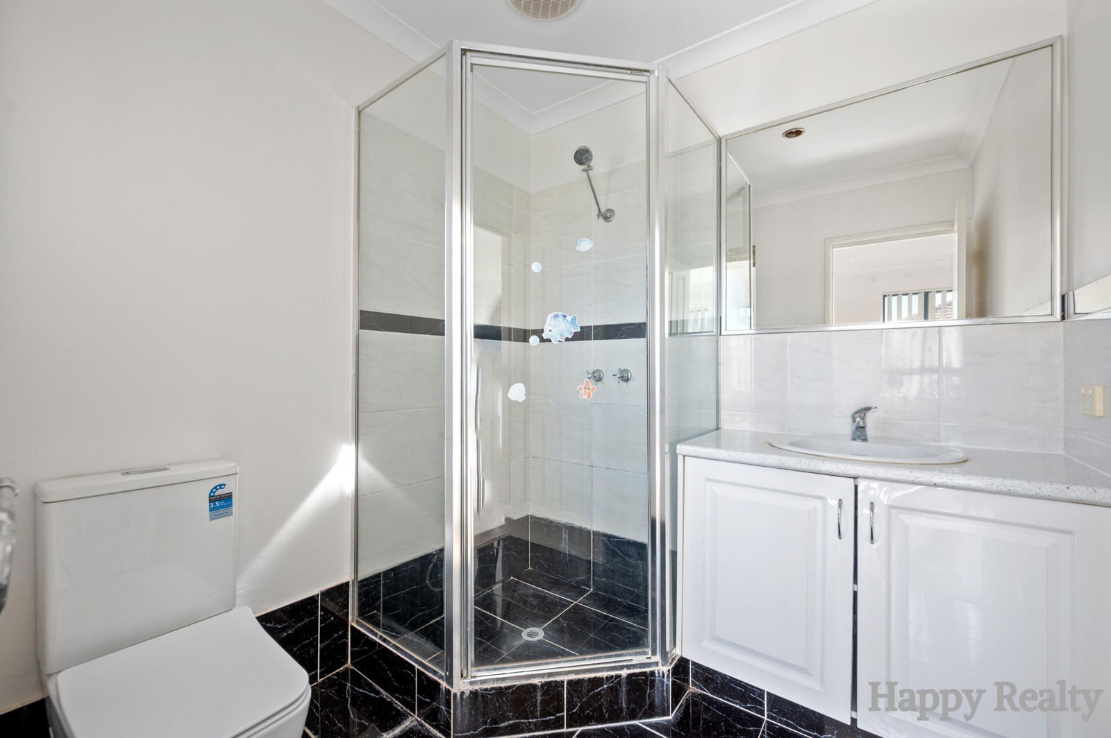 • There are three bathrooms in total, with the master ensuite, an upstairs bathroom with bath and shower plus separate toilet, and a downstairs bathroom with shower and toilet.