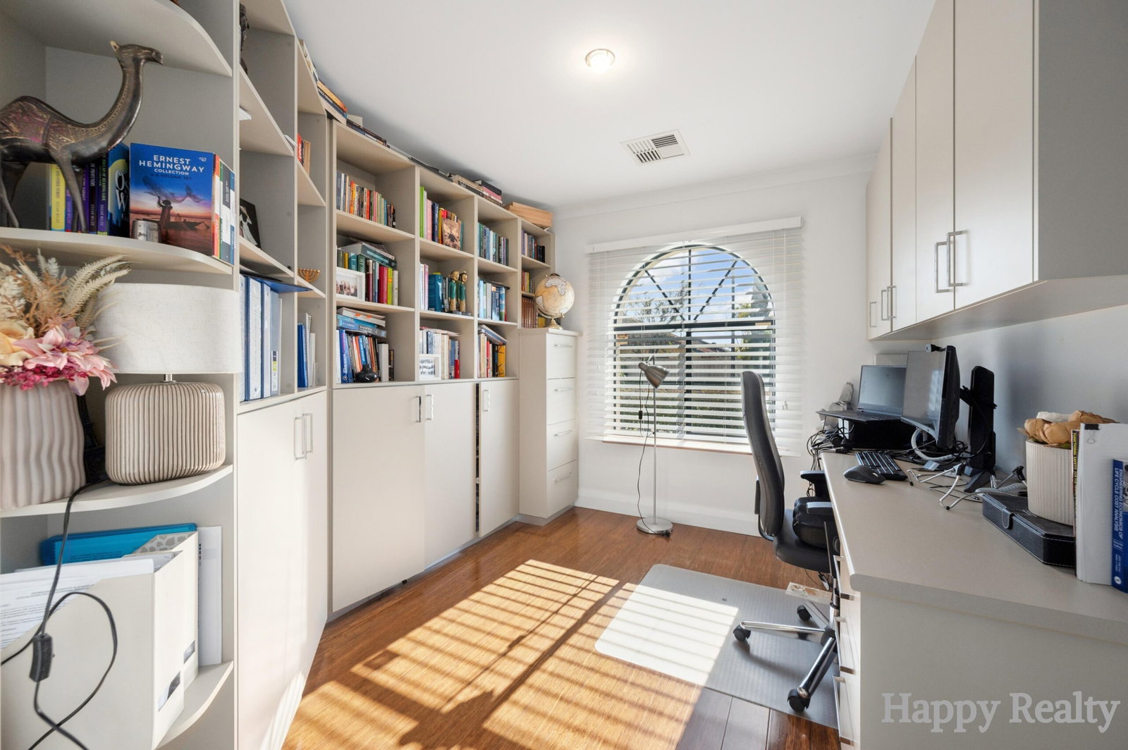 As you step inside, sunlight gently seeps through the entrance, illuminating a sophisticated study and formal lounge, both finished with stunning hardwood flooring. This inviting front section of the home creates the perfect setting for quiet work, relaxation, or hosting guests, setting the tone for the quality carried throughout.