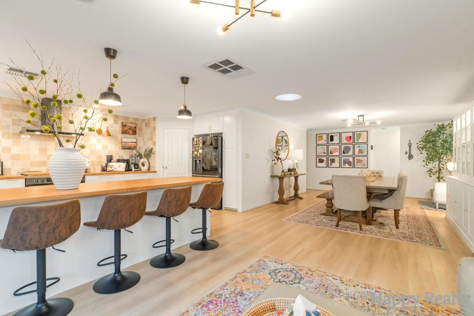 Beautifully renovated and smartly upgraded, this family-ready home blends contemporary style with effortless day-to-day living across multiple zones. A grand double-door entry sets the tone, opening to light-filled interiors finished with durable PVC hybrid floorboards. At the heart, an open-plan kitchen, dining and living area invites connection and easy entertaining. The fully renovated kitchen features top-brand appliances, abundant soft-close cabinetry and drawers, generous bench space, and a recess for a double-door fridge-bringing function and finesse together for weeknight meals and weekend gatherings.